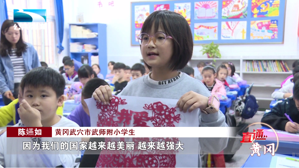 黄冈武穴市武师附小学生 陈嬿如:“我的作品是我爱中国,因为我们的国家越来越美丽,越来越强大。”