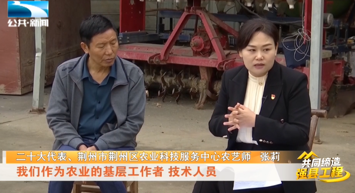 二十大代表、荆州市荆州区农业科技服务中心农艺师 张莉:“牢记住习近平总书记的嘱托,坚决扛稳粮食安全责任。我们作为农业的基层工作者、技术人员,还有像你们新型农业的家庭农场主和示范主体,应该站在守住粮食安全的第一道防线上,做好粮食安全生产的排头兵。”