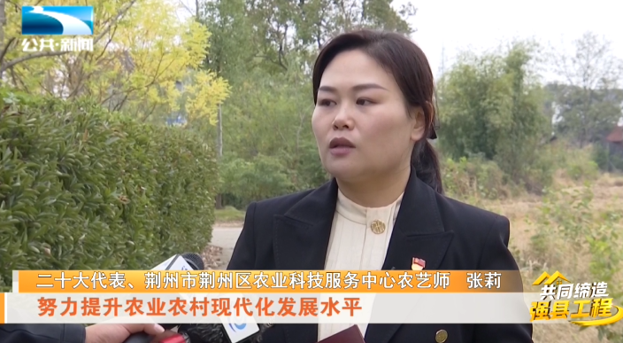 二十大代表、荆州市荆州区农业科技服务中心农艺师 张莉:“我们将牢记习近平总书记嘱托,加快技术创新、科技赋能农业生产的步伐,努力提升农业农村现代化发展水平。”