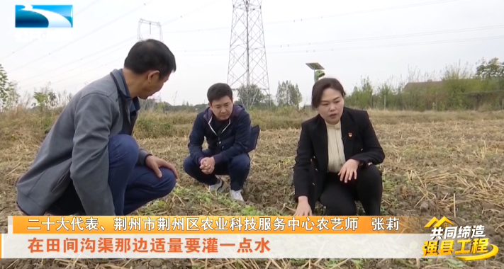 二十大代表、荆州市荆州区农业科技服务中心农艺师 张莉:“这段时间心心念念它们出苗的情况,如果说后期连续五到七天没有雨,在田间沟渠那边适量要灌一点水。”