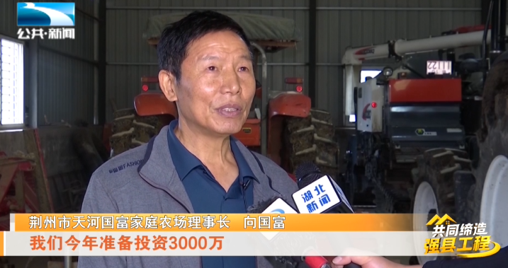荆州市天河国富家庭农场理事长 向国富:“听到报告以后,非常振奋,农业非常广阔、大有作为。我们今年准备投资3000万,对今后的农业机械提档升级,往数字农业、智慧农业方面去发展。”