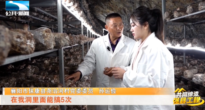 襄阳市保康县尧治河村党委委员 孙运俭:“蘑菇放在我们矿洞最适应,一是它长的营养性好些,第二个它产量高些,在外面3次(收茬),在我洞里面能搞5次。”