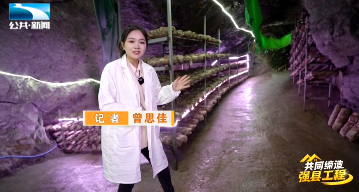 记者 曾思佳:“四通八达的矿洞里有50万袋的香菇是什么样体验?我现在真的是被香菇包围,不知所措。”