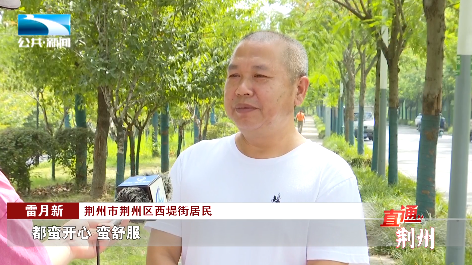 荆州市荆州区西堤街居民 雷月新:“门口的口袋公园、停车场、沿河路、护城河全部改善了,每天晚上,小区居民在公园以及沿河路散步,都蛮开心,蛮舒服。”