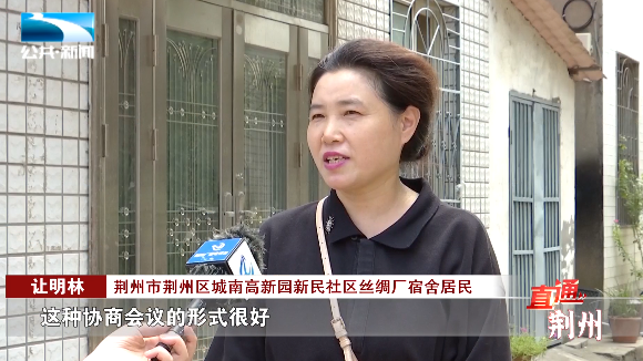 荆州市荆州区城南高新园新民社区丝绸厂宿舍居民 让明林:“我建议把绿化搞得漂漂亮亮,都是为了共建我们这个小区,不能搞一言堂,这种协商会议的形式很好。”