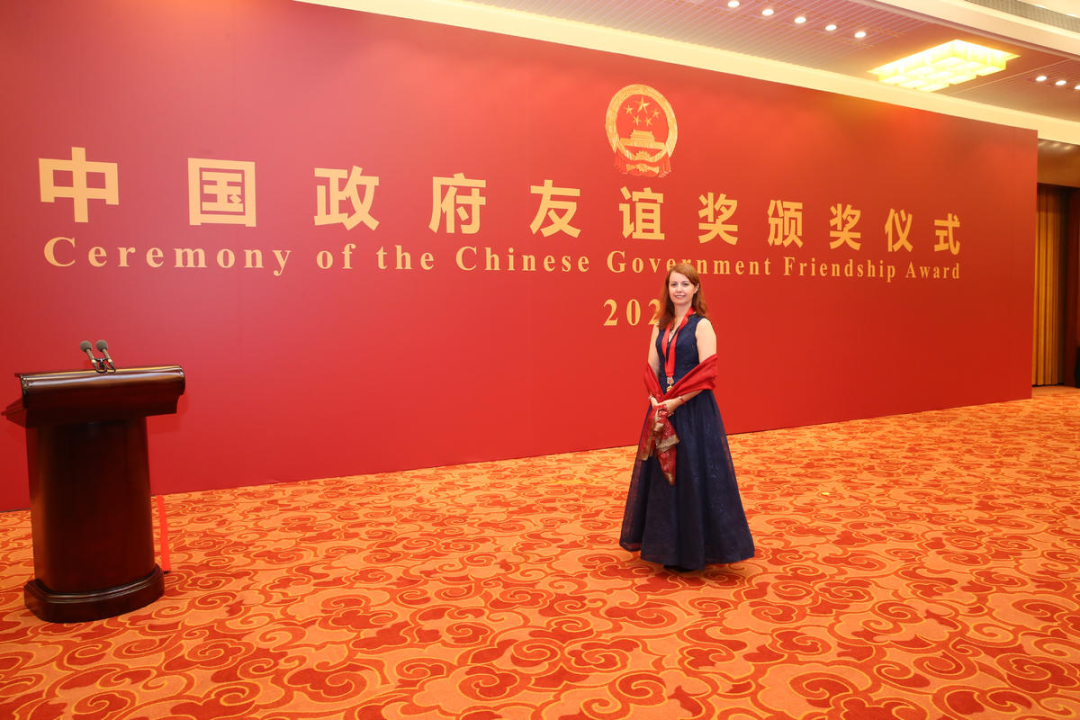 萨拉说,来中国15年,她最为自豪的一件事,就是2021年9月,她获颁2020年中国政府友谊奖。中国政府友谊奖是为表彰在中国现代化建设和改革开放事业中作出突出贡献的外国专家而设立的最高奖项。萨拉兴奋地说到:“这个奖对我非常重要,它激励我继续做好意大利和中国的友好使者!”