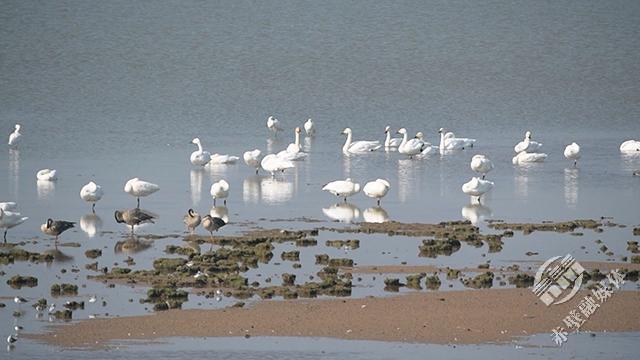 陆水湖湿地管理处监测员 洪波:“一般是11月中旬到12月初,这是候鸟迁徙的一个高峰时期。据我们不完全的统计,我们监测最多的时候有38种水鸟种群,目前我们黄盖湖水鸟种群最多的应该就是雁鸭类,包括我们熟悉的小天鹅、大雁、野鸭等。大家都知道我们东港湖稀有的国家一级保护动物白鹤是全世界都关注的,全球才4000多只,我们这里最高的时候来了76只。”