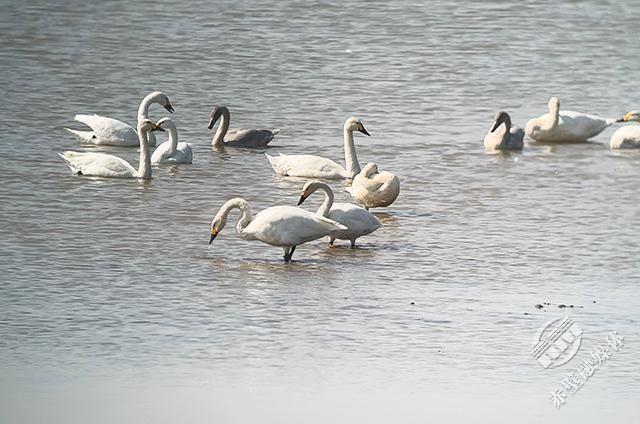 洪波是陆水湖湿地管理处监测员,这些天,洪波每天都会带上观鸟设备巡湖。据他介绍,今年自10月2日以来,已有小天鹅、赤麻鸭、白琵鹭、白鹭、苍鹭、豆雁、鸿雁、灰雁、绿头鸭、斑嘴鸭、环颈鸻、灰鸻、鹤鹬、黑腹滨鹬、青脚鹬、红嘴鸥等多种鸟类“安居”黄盖湖。