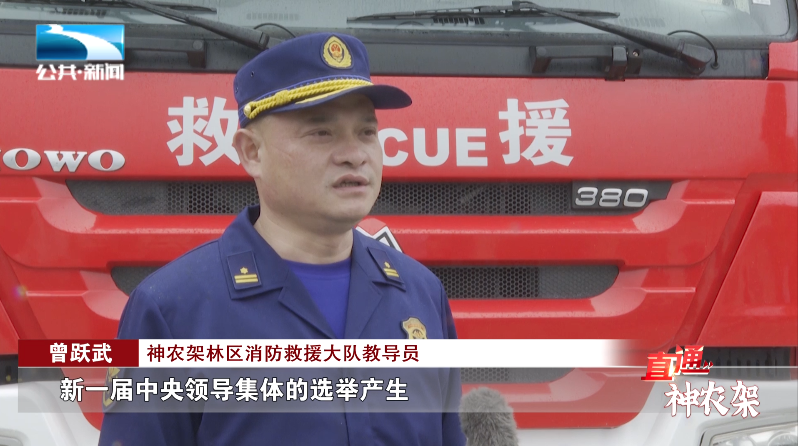 神农架林区消防救援大队教导员 曾跃武:“以习近平同志为核心的新一届中央领导集体的选举产生,反映了民心所向,体现了众望所归。我们要更加坚定地听党话、跟党走,始终忠诚践行习近平总书记授旗训词精神,在各项急难险重任务面前当尖兵、打头阵。”