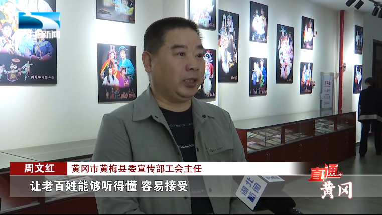 黄冈市黄梅县委宣传部工会主任 周文红:“一去二三里,村村都有戏,黄梅戏在黄梅民间有非常深厚的基础,为了更好地学习宣传党的二十大精神,我们组织创作了一批文艺作品,目的就是通过唱讲的形式,让老百姓能够听得懂,容易接受。”