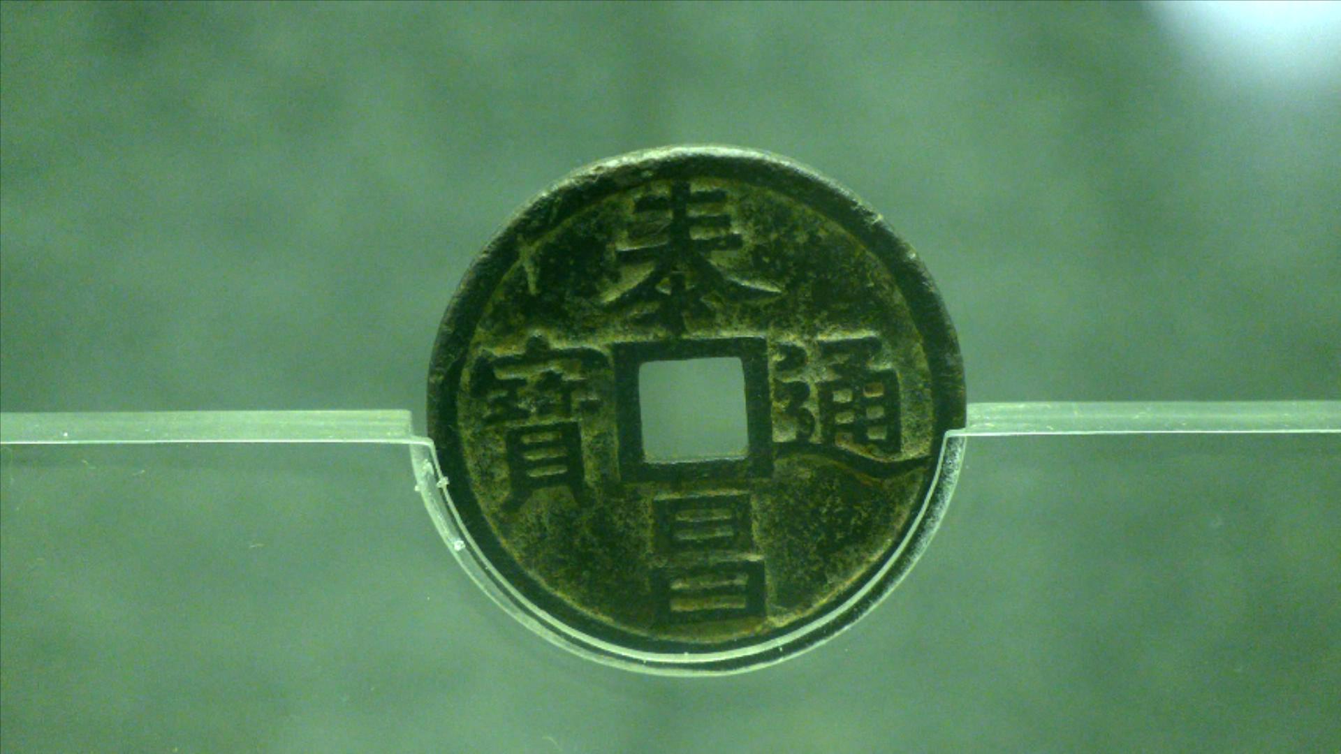 中南财经政法大学中国货币金融历史博物馆副主任 毛智周:为什么这么珍贵呢?因为泰昌是明光宗朱常洛的年号,而明光宗朱常洛只当了一个月皇帝就去世了,他在位期间根本没有来得及铸造钱币,现存的泰昌通宝都是他的儿子天启皇帝和崇祯皇帝补铸的,小钱还存世一些,这枚折五钱通俗理解就是五块钱,目前仅发现这一件,弥足珍贵,所以就是我们馆的镇馆之宝。
