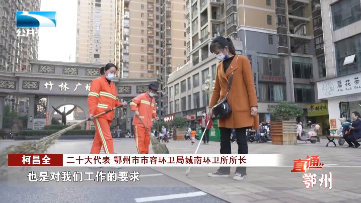 二十大代表、鄂州市市容环卫局城南环卫所所长 柯昌全:“以前我们就是凭着几把扫把和一个撮箕在路上扫起来,你看现在到处都是我们的环卫车辆,从这个环卫的变化,看出我们社会的变革、社会的变化。”