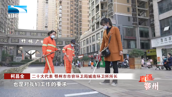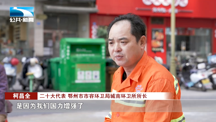 二十大代表、鄂州市市容环卫局城南环卫所所长 柯昌全:“以前我们就是凭着几把扫把和一个撮箕在路上扫起来,你看现在到处都是我们的环卫车辆,从这个环卫的变化,看出我们社会的变革、社会的变化。”