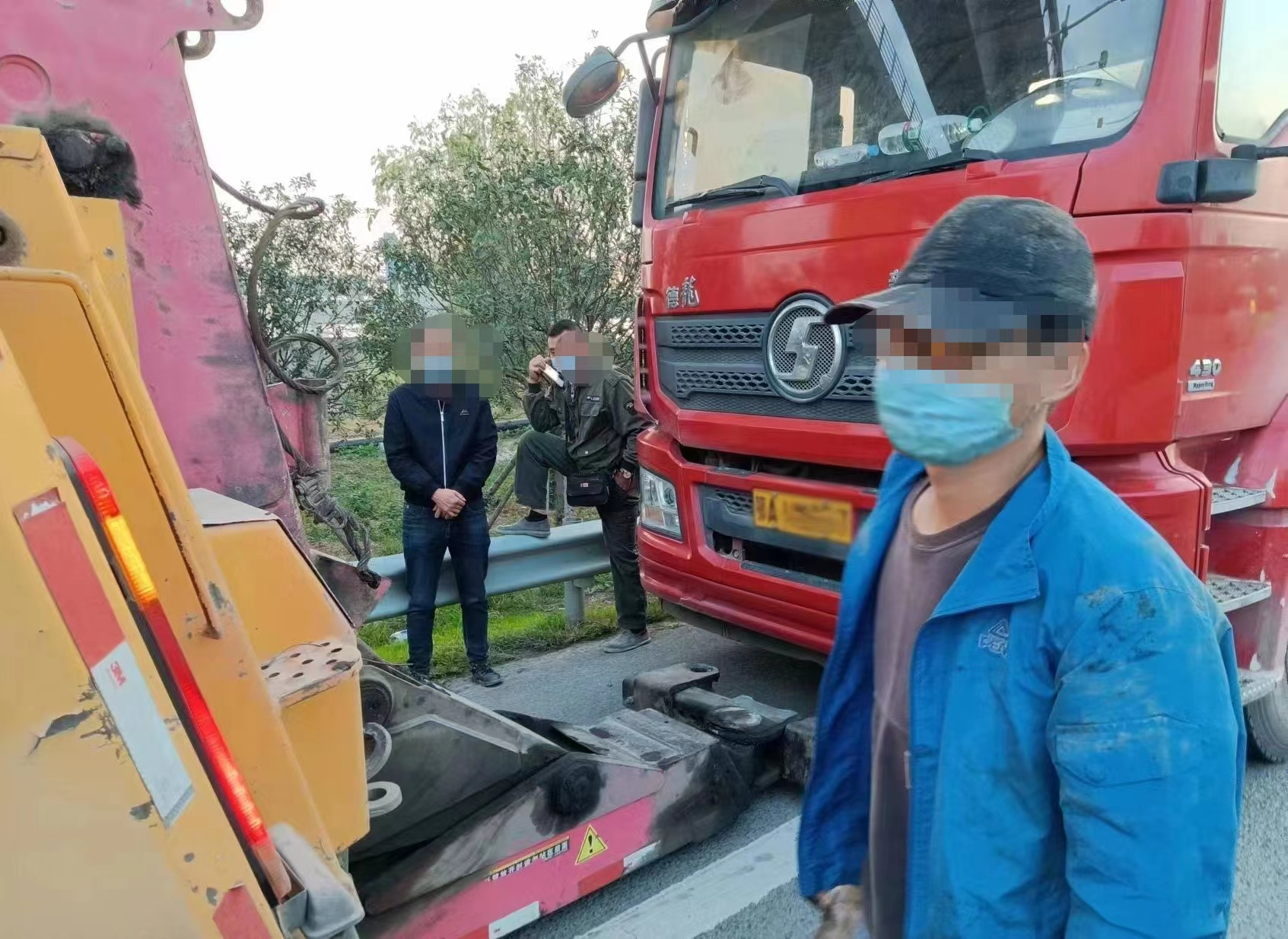 为维护交通秩序,防止事故发生,执法队员联系来拖车,准备将货车拖离。6时许,当拖车到达现场,戏剧性的一幕发生了,一名男子忽然从路边树丛里跑出,喊道:“别拖别拖,这是我的车!”