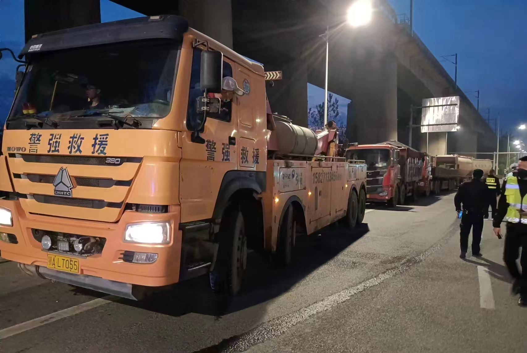 11月12日凌晨5时许,武汉市江岸区治超专班、区交通大队联合市桥梁隧道事务中心正在三环线开展超载整治行动,执法人员发现三环线入口出现堵塞,遂上前查看,原是一辆货车停在路上占去一半路面,导致过路车辆行驶缓慢。