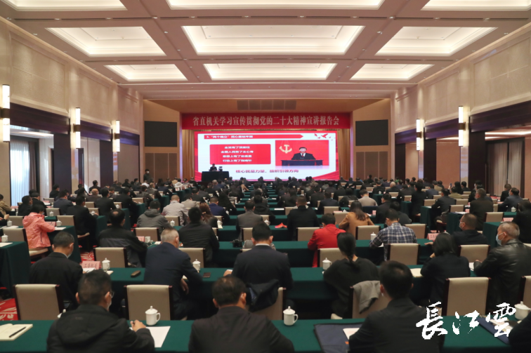 11月15日上午,湖北省委直属机关工委举办省直机关学习宣传贯彻党的二十大精神宣讲报告会,由此拉开省直机关基层党组织书记带头宣讲党的二十大精神序幕。省委宣讲团成员、省委直属机关工委常务副书记陈正祥作专题宣讲,省直121家单位机关党委专职副书记现场聆听报告。