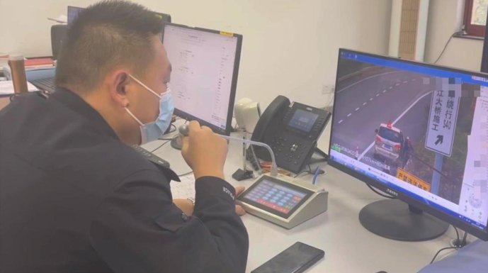 事发当天下午,湖北高速交警江夏大队监控室通过监控巡查发现,在武汉绕城高速武汉南段,一辆开着双闪的商务车疑似抛锚,车上的司乘人员全部聚在车旁,未转移至护栏外,车顶上竟赫然放置着三角警示牌,旁边不断有车辆疾驰而过,情况十分危险。监控室民警立即通过广播喊话提醒司乘人员,并通知巡逻民警前往查看。