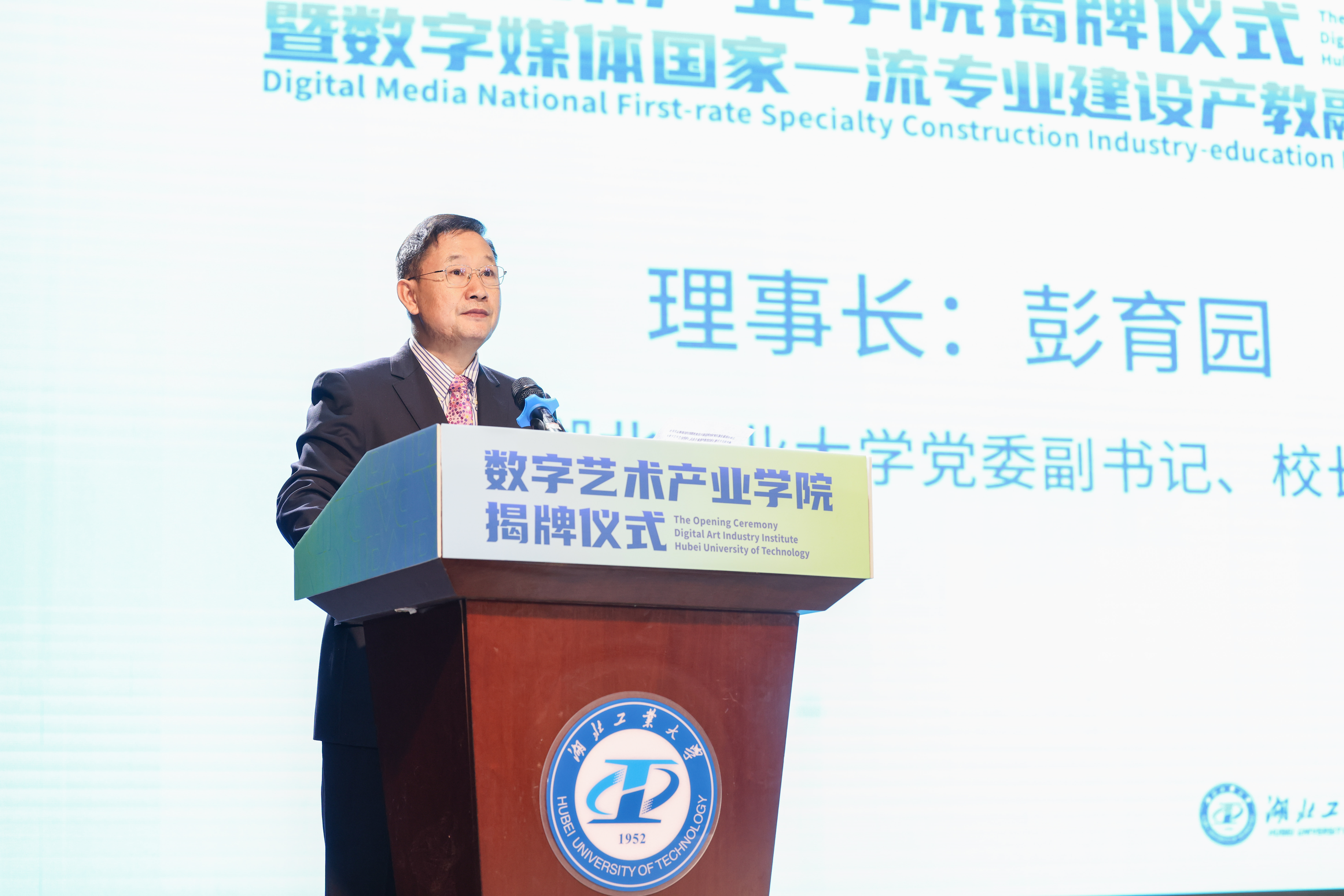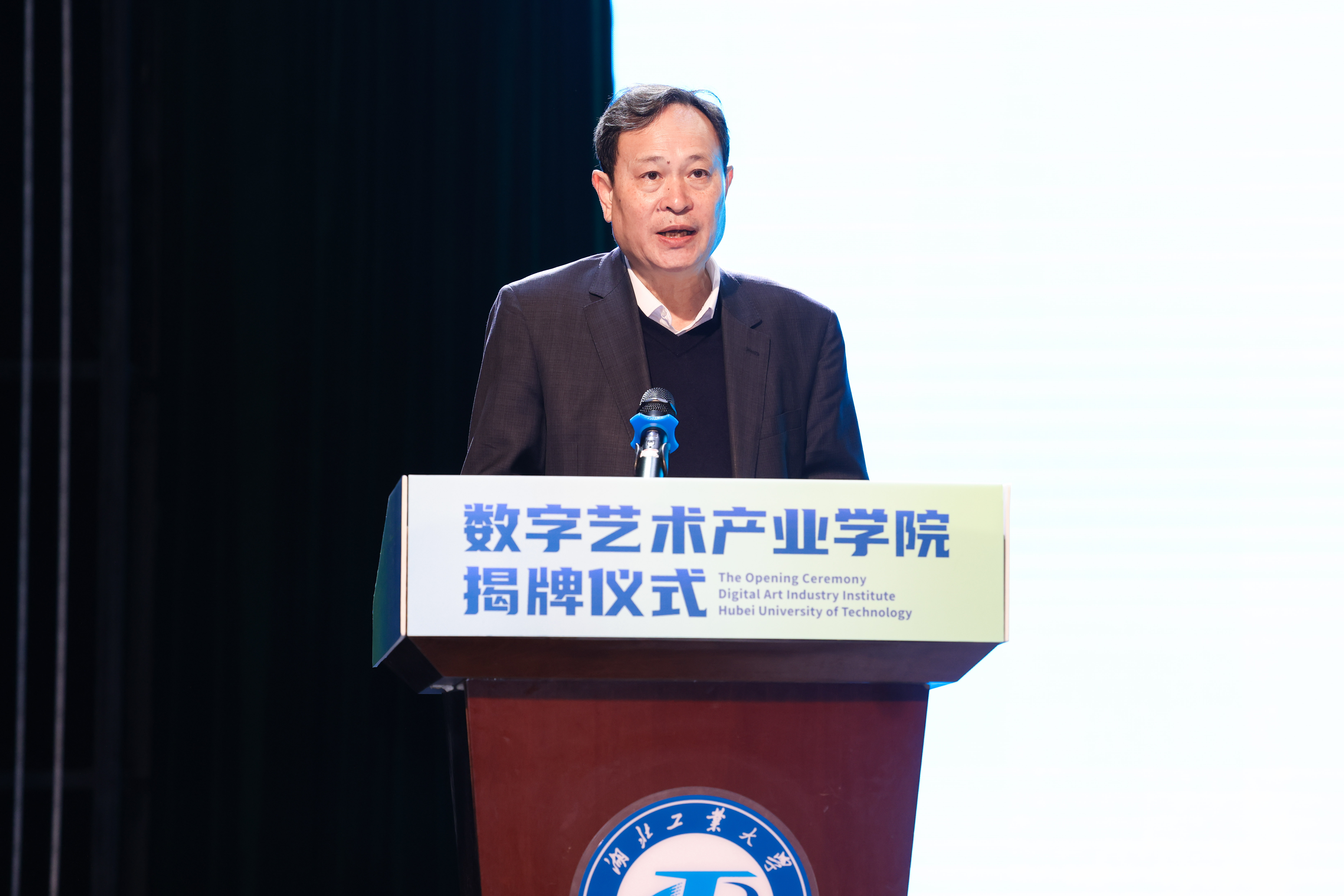 湖北工业大学党委副书记、校长 彭育园:希望数字艺术产业学院的师生们,用创意设计来勾连艺术、技术与文化,用数字艺术为数字经济发展注入新动能,用新颖的数字艺术作品来丰富中华民族文化基因的当代表达,用能走出去的优秀作品,向全世界全景式地呈现博大精深的中华文化。