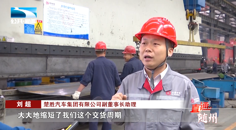 楚胜汽车集团有限公司副董事长助理 刘超:“大大地缩短了我们这个交货周期,提高了我们的生产效率,这台设备代表了随州专用车最先进的下料工艺。”