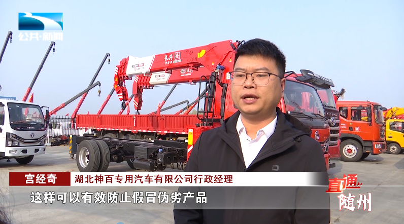 湖北神百专用汽车有限公司行政经理 宫经奇:“这样可以有效防止假冒伪劣产品,也可以使我们长兴吊机的品牌永久保存,提高我们的保值率。”