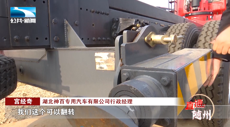 湖北神百专用汽车有限公司行政经理 宫经奇:“这个随车吊的后支腿以前是离地20公分,在工地上有很多情况下是很难通过的,经过我们的设计,我们这个可以翻转,之后这个支腿离地有50公分了,非常容易通过。”