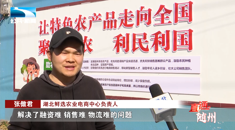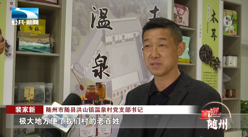 随州市随县洪山镇温泉村党支部书记 裴家新:“极大地方便了我们村的老百姓,集体经济也沾了不少的光,农产品外流,整合我们洪山所有的农产品,在我们这实行线上线下销售,同时也为我们村民增收提供了很大的帮助。”