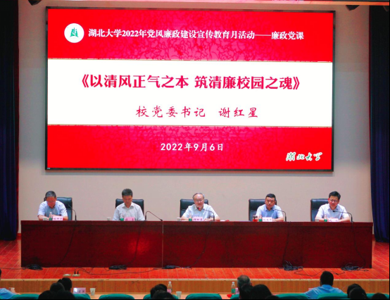 “思想闸门要紧之又紧、言行举止要慎之又慎、自我约束要严之又严,自觉筑牢廉洁自律防火墙。”湖北大学党委书记谢红星在2022年党风廉政建设宣教月活动推进会上,以《以清风正气之本 筑清廉校园之魂》为主题,为全校党员干部上了一堂主题鲜明、内涵丰富、生动鲜活的廉政党课。