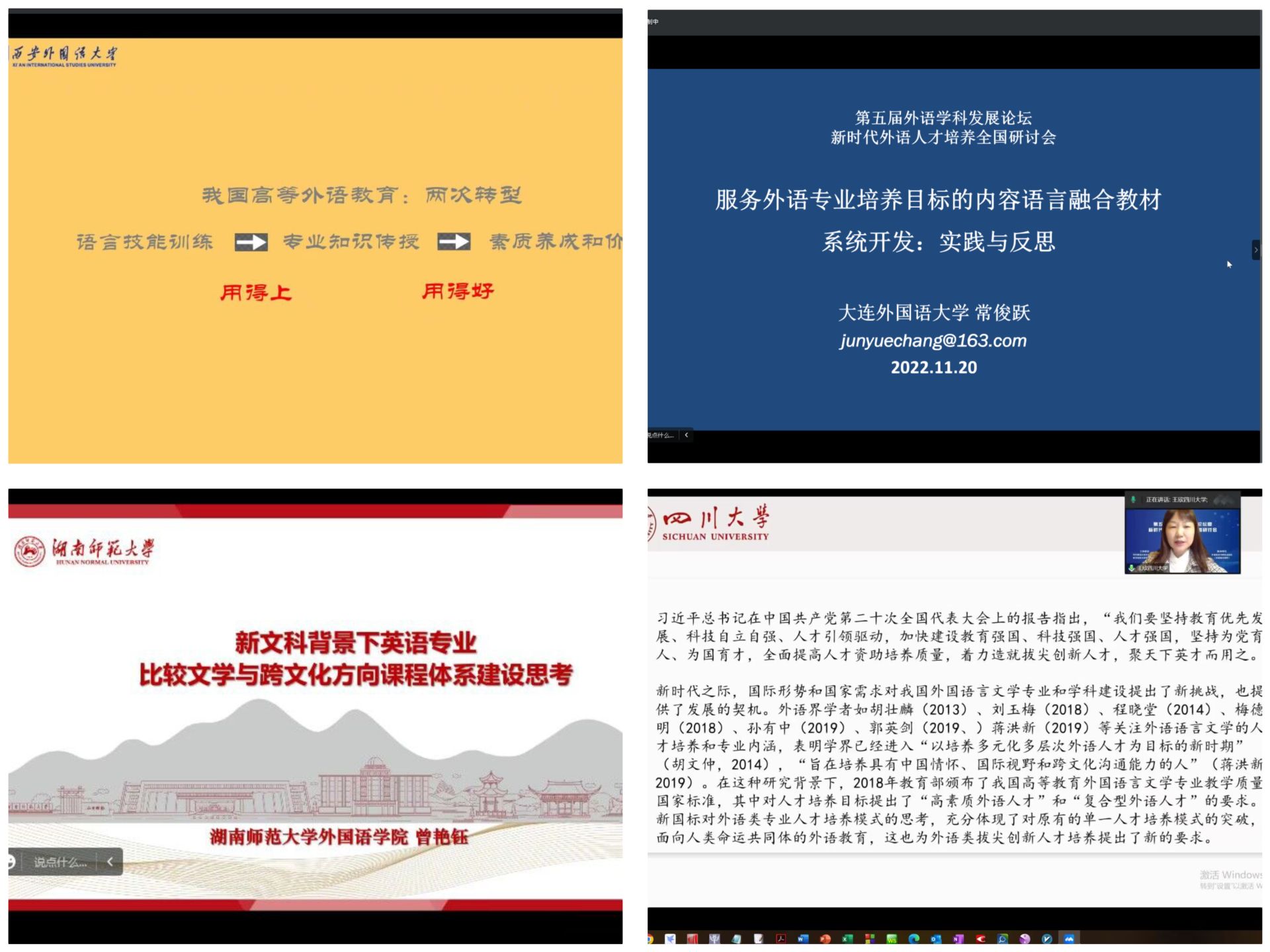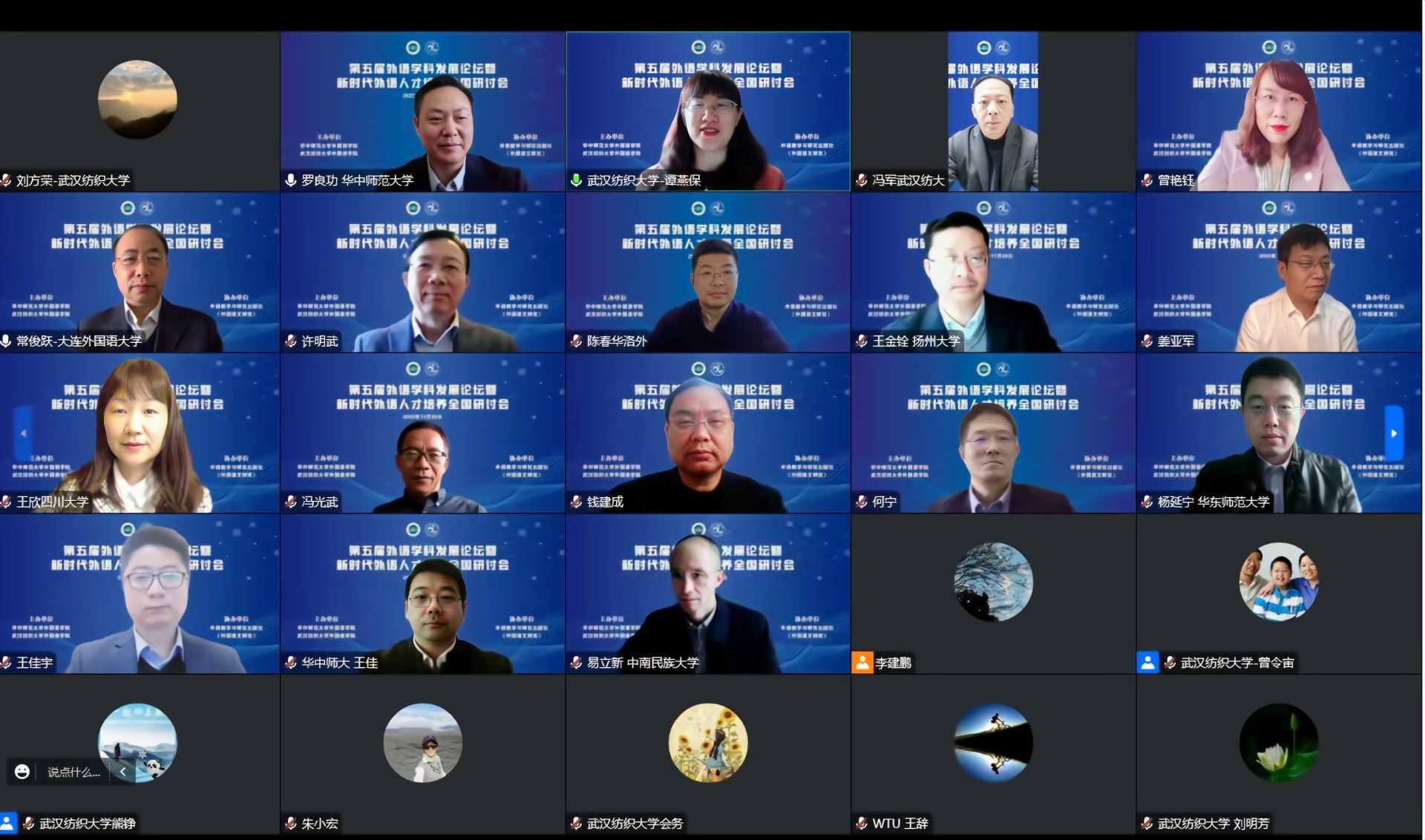11月20日,第五届外语学科发展论坛暨新时代外语人才培养全国研讨会正式拉开帷幕。来自华中科技大学、四川大学、华东师范大学、郑州大学、湖南师范大学、西安外国语大学、大连外国语大学、华中师范大学和武汉纺织大学等10余所高校的专家学者,以及长期从事外语教学、热爱外语学科的师生共计二百余人相聚线上,参加了此次研讨会。