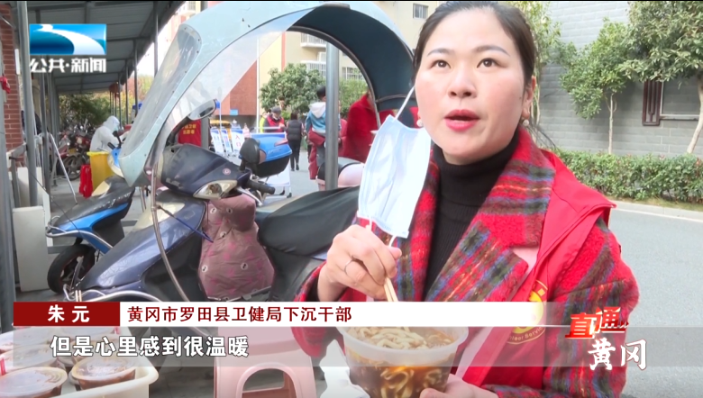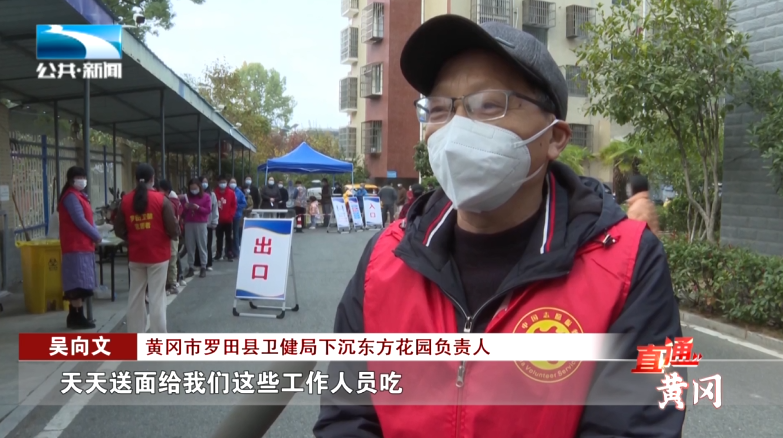 黄冈市罗田县卫健局下沉东方花园负责人 吴向文:“一碗面 一份情,天天送面给我们这些工作人员吃,非常感谢。”