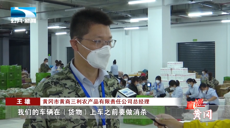 黄冈市黄商三利农产品有限责任公司总经理 王雄:“首先我们的车辆都是专车专用,我们的车辆在(货物)上车之前要做消杀,所有的打包、分拣人员都要24小时核酸检测证明。”
