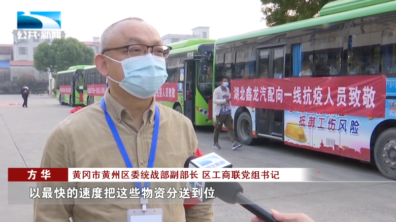 黄冈市黄州区委统战部副部长、区工商联党组书记 方华:“在不到一天的时间捐赠了60万元,通过红十字会向黄商集团采购蔬菜包,通过疫情指挥部协调20多台中巴车,以最快的速度把这些物资分送到位。”