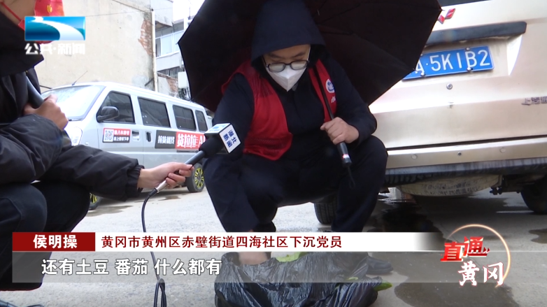 黄冈市黄州区赤壁街道四海社区下沉党员 侯明操:“这里面有黄瓜、有青椒,还有大白菜,还有土豆、番茄,什么都有,基本上可以满足了,还有金针菇,感觉种类还是比较齐全的。关心他们的生活、疏解他们的情绪,最重要的是让他们知道,还有人在关心他们。”