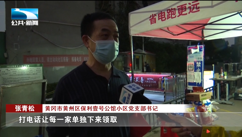 黄冈市黄州区保利壹号公馆小区党支部书记 张青松:“东西来了之后,我们就按照清单打电话让每一家单独下来领取,对行动不便和居家隔离的(居民),我们就送上门。”