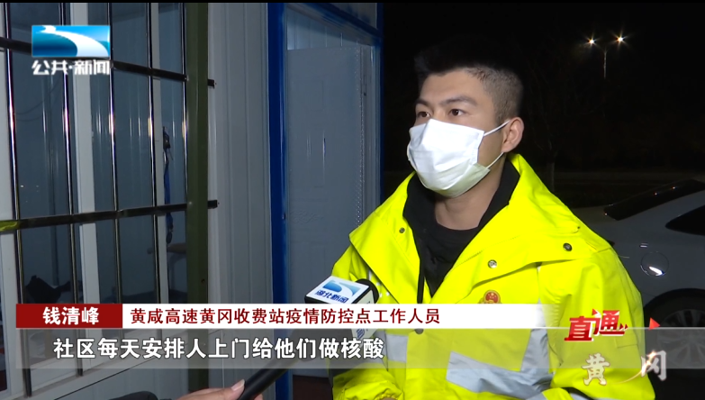 黄咸高速黄冈收费站疫情防控点工作人员 钱清峰:“高风险区现在是需要居家隔离的,我们就通知社区,社区每天安排人上门给他们做核酸。”
