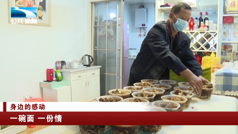 在东方花园小区,张国松与妻子汪玮玲正在厨房里忙活。灶台上,高压锅里传出阵阵牛肉的香味,大锅里的手工切面煮得翻滚,干净的碗筷摆放得整整齐齐。经过两个多小时的紧张忙碌,三十多份鲜香、滚烫的牛骨头面做好了。细心的汪玮玲还特意给每碗面撒上葱花。面做好后,夫妻俩赶紧出门,趁热送到防控点。
