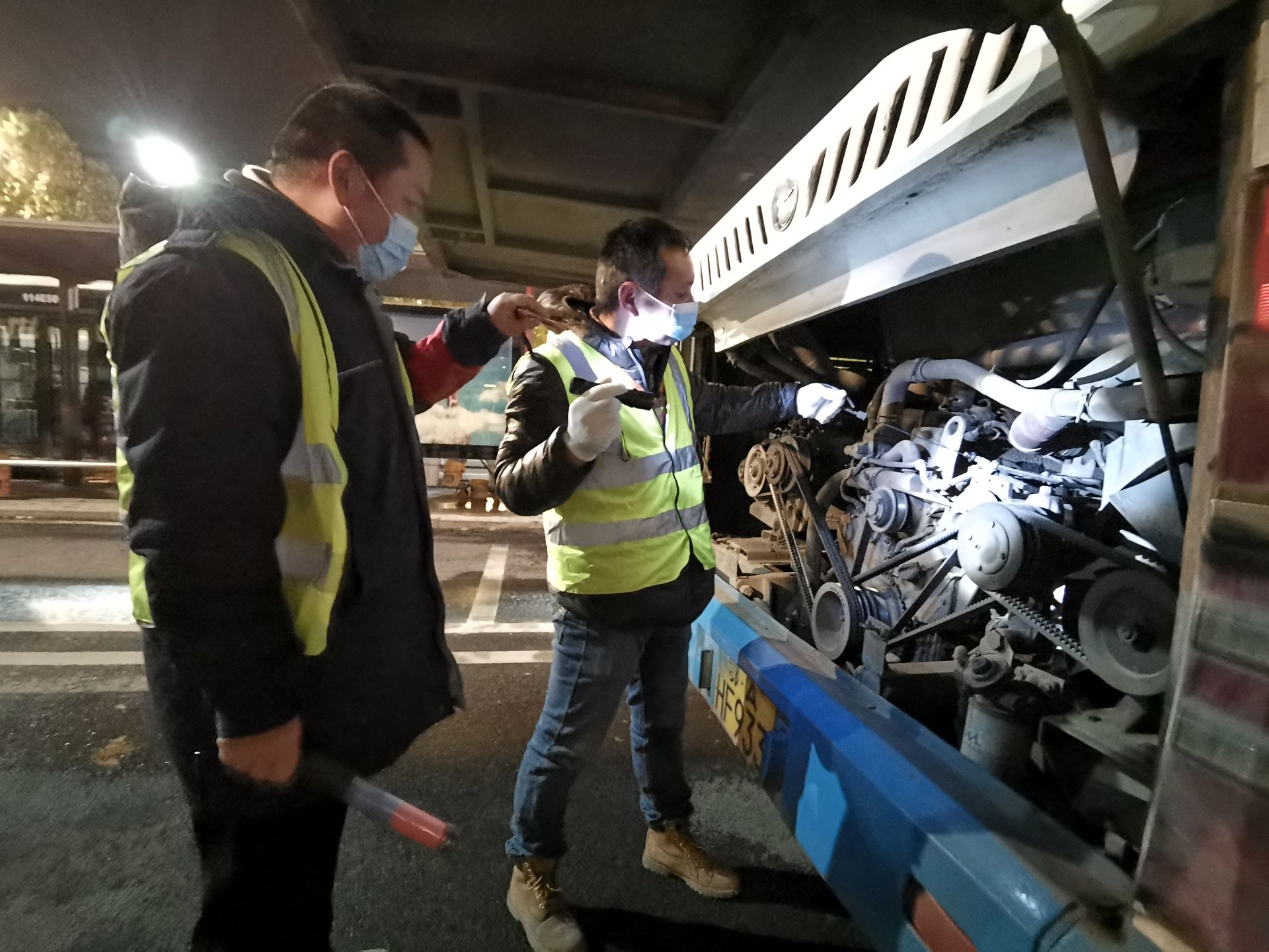 “灯光、雨刮都打开看一下!”、“刹车也试一试!”11月29日凌晨5点,北风呼啸,寒气袭人,在武汉新湾三路公交站,705路路头班车司机吴松提前到港,线长刘晓辉就拿着签字本,面对面打招呼,安全预警到位后,又车前车后帮忙仔细检查车辆雨刮、灯光、刹车等,确保“不合格的车辆不上线”,完成车辆“十检”,提前暖车,开启车厢空调后,吴松信步走进调度室,来到岗前安全确认机前,按程序完成上班签到、酒精检测、心理测试、心率血压等岗前安全状态确认、完成签名后,等候调度排班。