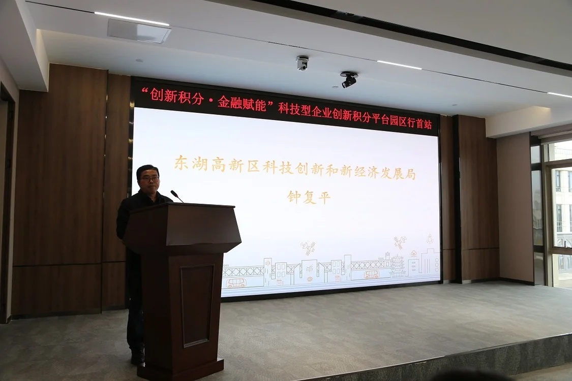 此次活动由东湖新技术开发区科技创新和新经济发展局、人民银行武汉分行、中国工商银行武汉分行、武汉东湖高新集团股份有限公司共同主办,以“创新积分 金融赋能”为主题,为东湖高新区科技型企业搭建与银行、担保公司的沟通交流平台,中国工商银行科创企业金融服务中心(武汉)、湖北省中小微企业融资担保有限公司、申万宏源证券有限公司等各方就创新积分平台融资申请、额度测算以及经营发展中的资金需求方面的问题进行了现场交流和深度探讨。