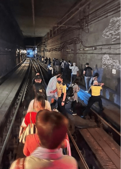 报道称,事故发生后,列车车长即时通知车务控制中心,并在确保安全的情况下,安排车站职员带领车上约1500名乘客,自车头紧急出口有序地沿隧道步行至将军澳站月台离开。期间至少2名女乘客不适,需由救护车送院治疗。