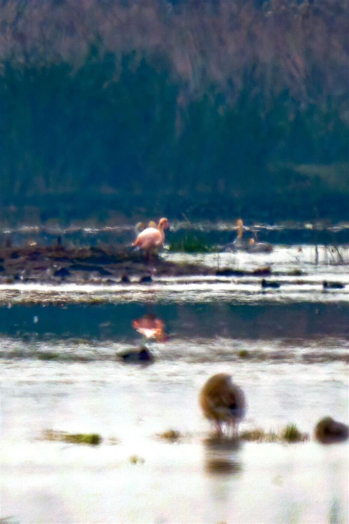 2日,沉湖湿地,大红鹳特别醒目 (谭文卓摄)