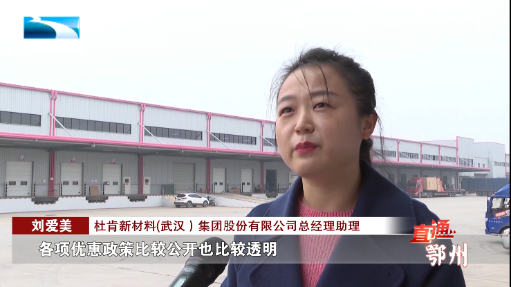 杜肯新材料(武汉)集团股份有限公司总经理助理 刘爱美:“葛店开发区的营商环境就我的切身体会而言比较好,所以就极力的向深圳天妙推荐我们葛店开发区,各项优惠政策比较公开也比较透明,各项项目落地措施比较快速完整。”