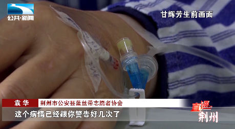 荆州市公安县蓝丝带志愿者协会 袁华:“我们每次跟她讲就说你不要这么拼命,这个病情已经跟你警告好几次了,反正你只要跟她讲这句话,她就认为你是在阻拦她,她就跟你争,就跟你吵。”
