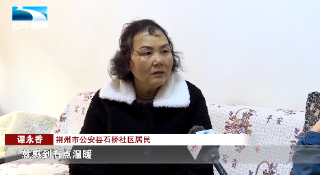 荆州市公安县石桥社区居民 谭永香:“格外地照顾我、关心我,就是跟自己的家人一样,一看到她们就像是自己的子女一样,就感到有点温暖。”