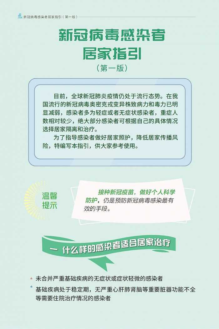 12月12日消息,据健康中国,国家卫健委印发新冠病毒感染者居家指引(第一版)。