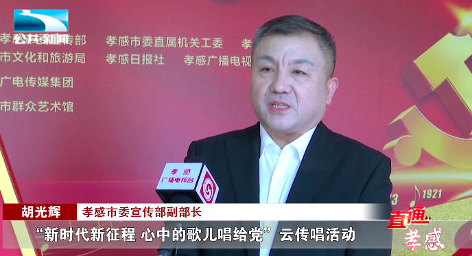 孝感市委宣传部副部长 胡光辉:“‘新时代新征程 心中的歌儿唱给党’云传唱活动,就是要掀起学习宣传贯彻党的二十大精神的热潮,进一步激发全市上下建功新时代、奋进新征程的壮志豪情,为全面建设社会主义现代化国家而奋斗。”