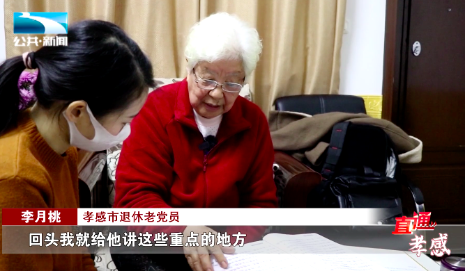 孝感市退休老党员李月桃:“我先学,我先学了以后,我把关键的地方记着,回头我就给他讲这些重点的地方,给他念一念。”