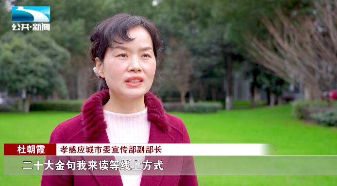 孝感应城市委宣传部副部长 杜朝霞:“应城市通过书画美术展,诵经典、讲故事,二十大金句我来读等线上方式,开展丰富多彩 形式多样的宣讲活动,覆盖受众20万人,点击量过百万次。”