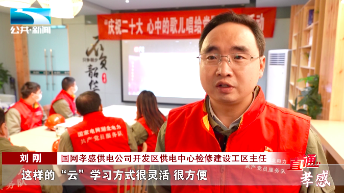 国网孝感供电公司开发区供电中心检修建设工区主任 刘刚:“这种‘云’学习的形式,也能让我们有身临其境的感受。‘云传唱’活动,以音乐回望党的历史,用歌声铭记初心使命,进一步增强了大家爱党爱国的热情,既丰富了基层班组文化,也营造出积极主动的干事创业氛围。”