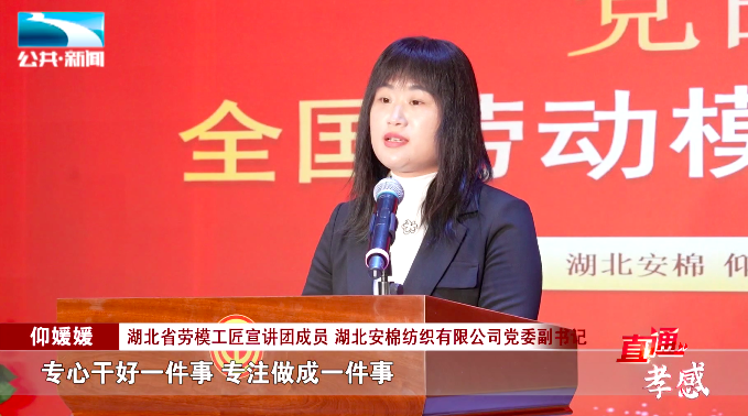湖北省劳模工匠宣讲团成员、湖北安棉纺织有限公司党委副书记 仰媛媛:“专心干好一件事,专注做成一件事,深入探索研究纺纱新技术、新工艺,努力让‘仰媛媛工作法’在新征程上,焕发出新的光彩,迸发出新的力量。”