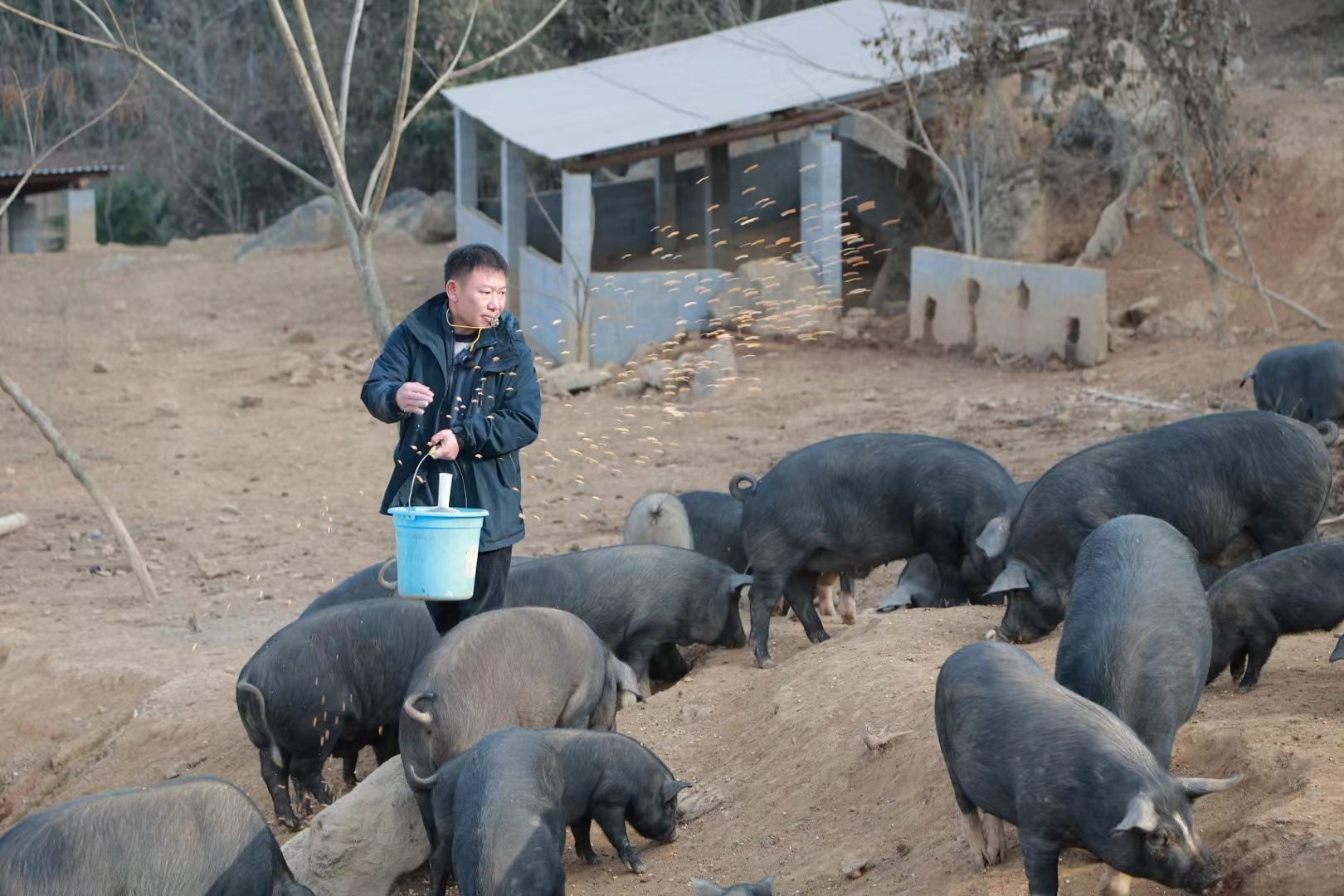 大堰乡本地的鄂西大黑猪是鄂西南的古老品种。宜昌清江肴生态农业有限公司董事长田江海向大家介绍,“我们饲养的黑猪靠吃本地粮食长大,然后还有几十亩的山地让它们活动。运动量大了,这个黑猪的肉就更加紧实,有嚼劲,连肥肉吃起来都会有一点粘牙的感觉。”