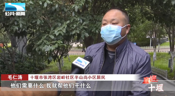 十堰市张湾区岩岭社区半山尚小区居民 毛仁涛:“他们需要什么,我就帮他们干什么,如果我没有时间,我们的‘两长三员’,或是楼栋志愿者也会去帮他们。”